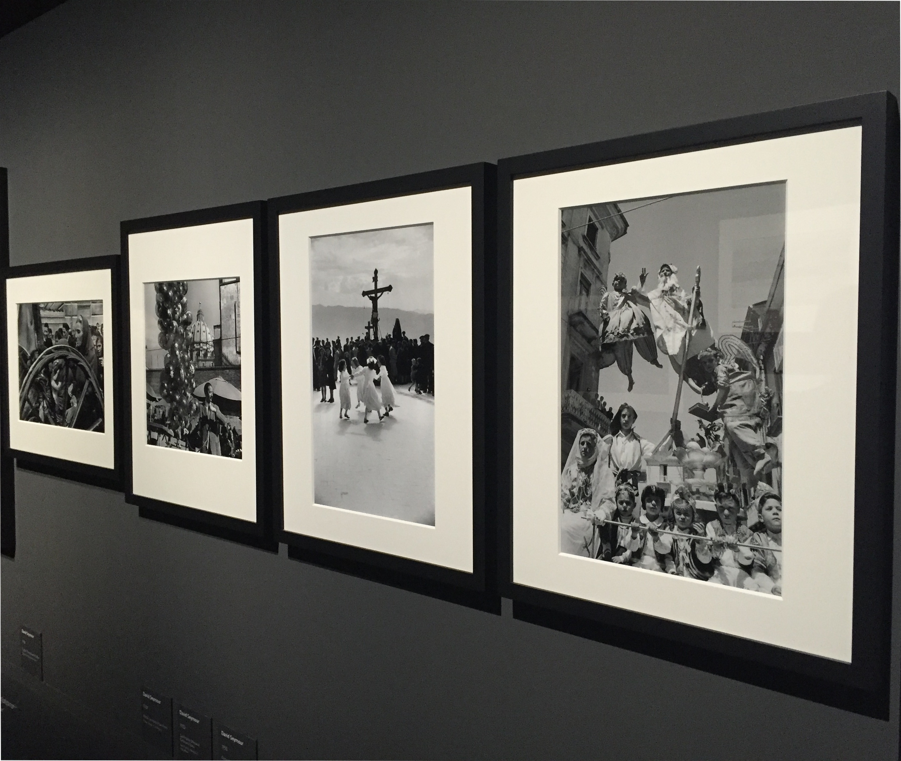 il momento decisivo tanto agognato e ricercato proprio da Cartier-Bresson, fin dal suo viaggio in Italia nel 1933; la Seconda Guerra Mondiale di Robert Capa, ormai saldamente impressa nella nostra memoria collettiva con alcuni tra gli scatti più famosi dell’intera mostra; le processioni religiose riprese dal suggestionante sguardo di David Seymur.